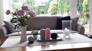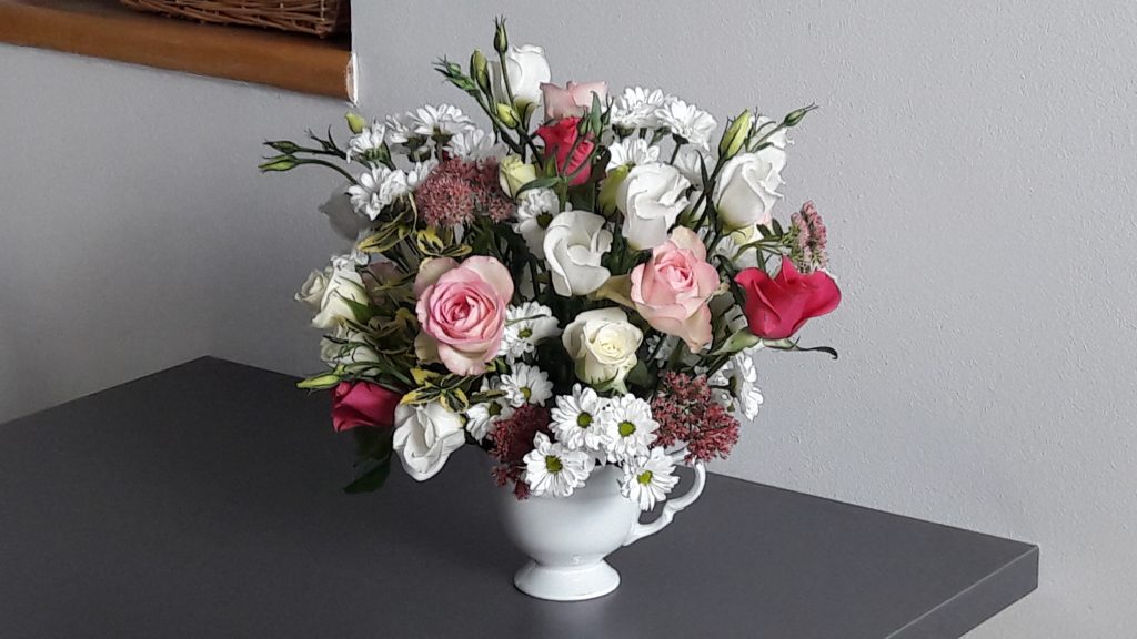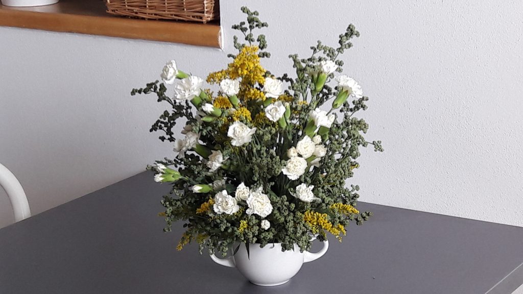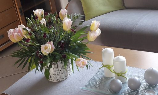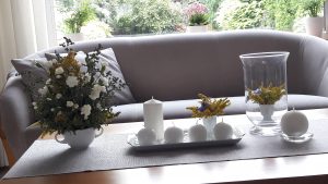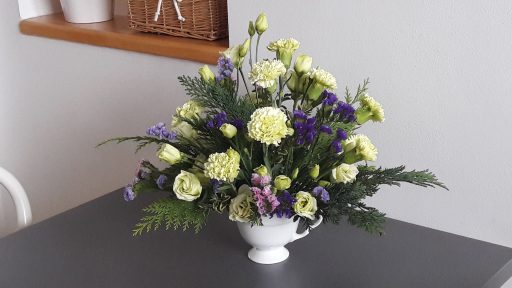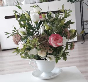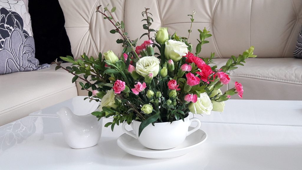 - Dekoracja, bukiet. Na stoliku do kawy. Taki pomysł….