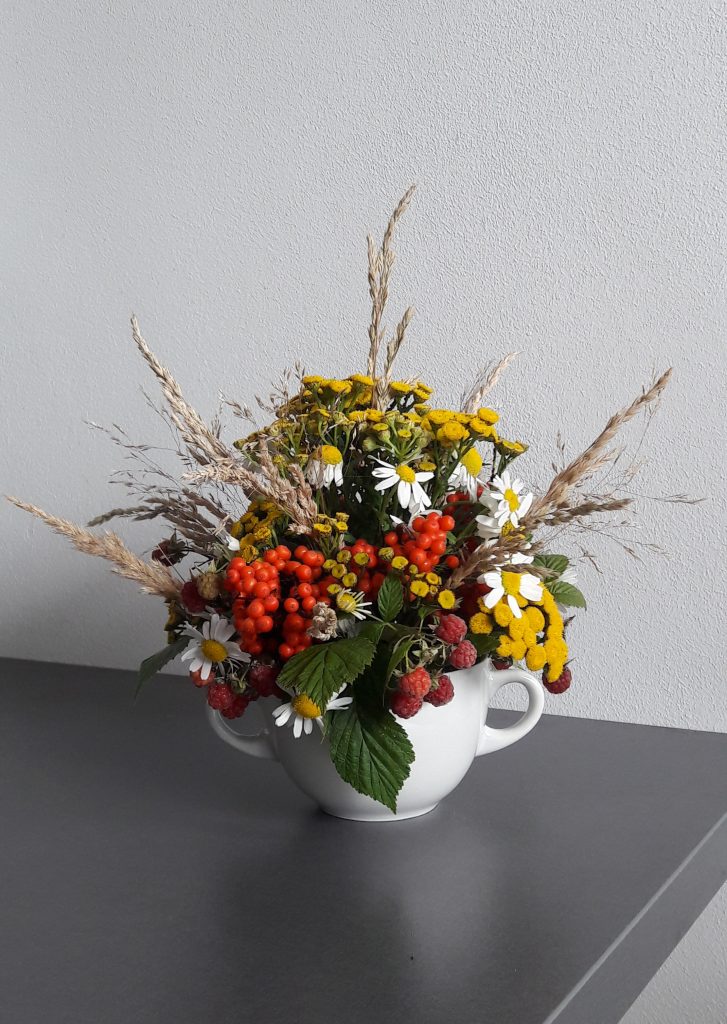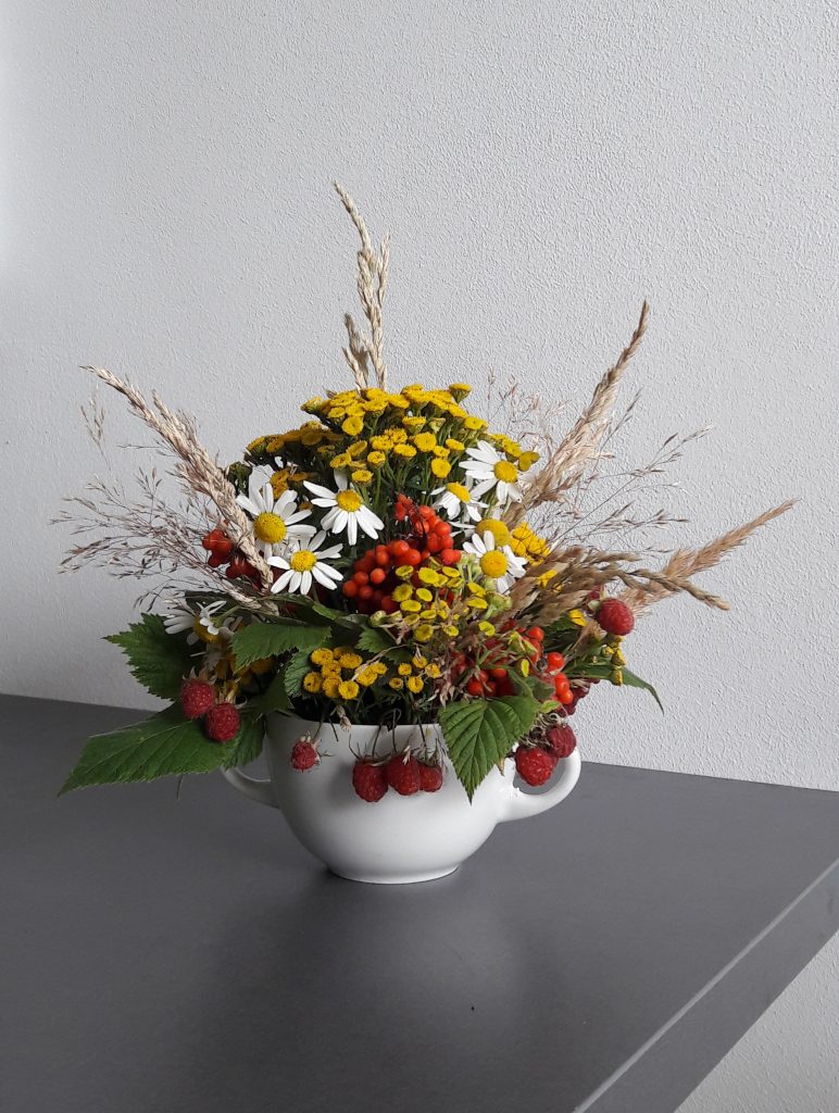 - Bukiet – letnia kompozycja z polnymi kwiatami i z pięciornikiem.