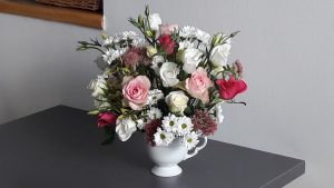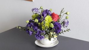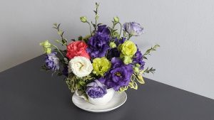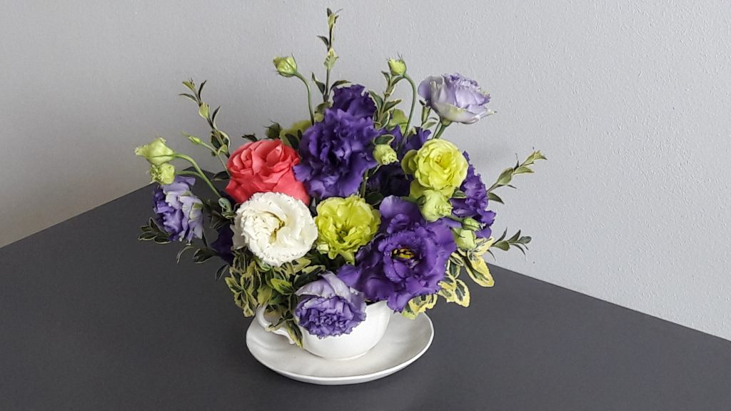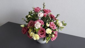 - Kompozycja – bukiet z delikatną eustomą.