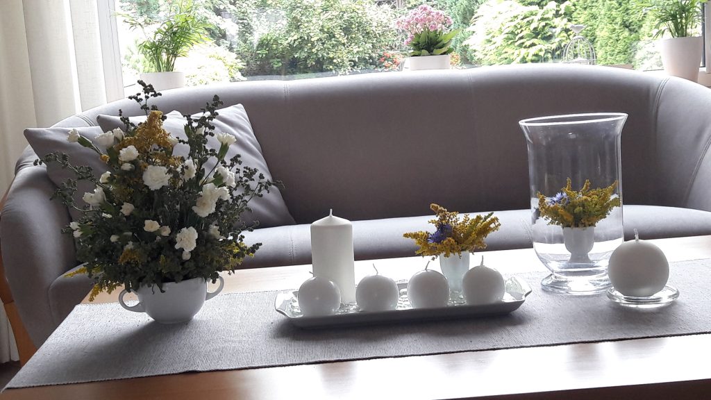 - Letni bukiet – w domu, jako dekoracja stołu i stolika kawowego.