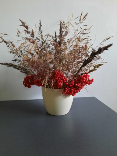- Bukiet – dekoracja, a w niej to co zimą rośnie w ogrodzie – sześć roślin. I coś jeszcze (ta siódma). W prezencie.